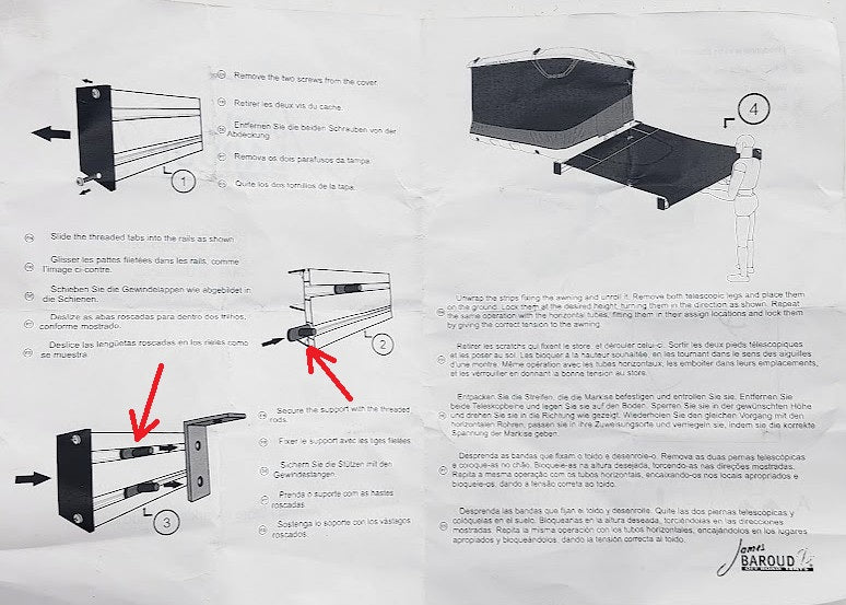 Set of 4 James Baroud t-shaped bolts to slide in the t-slot of the backside of your classic straight james baroud awning, or 270 Falcon awning.