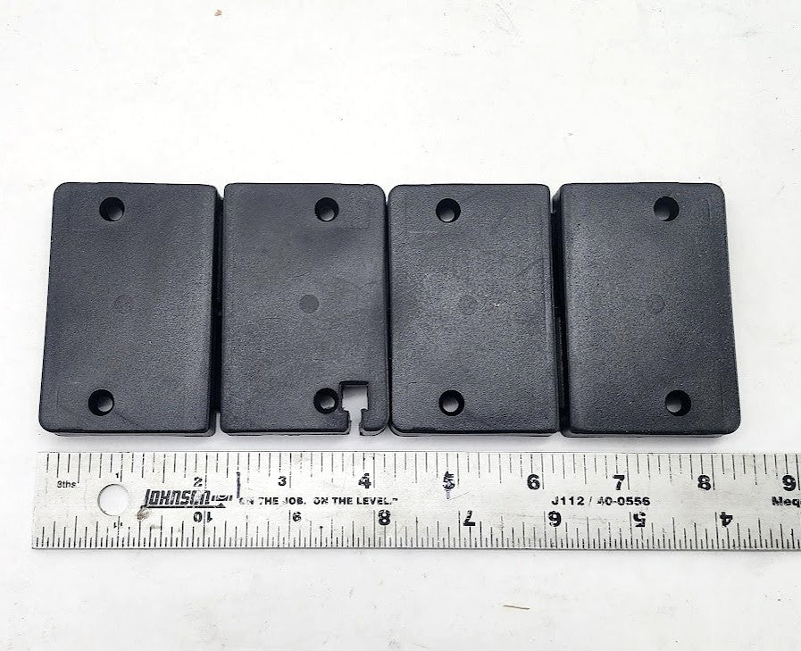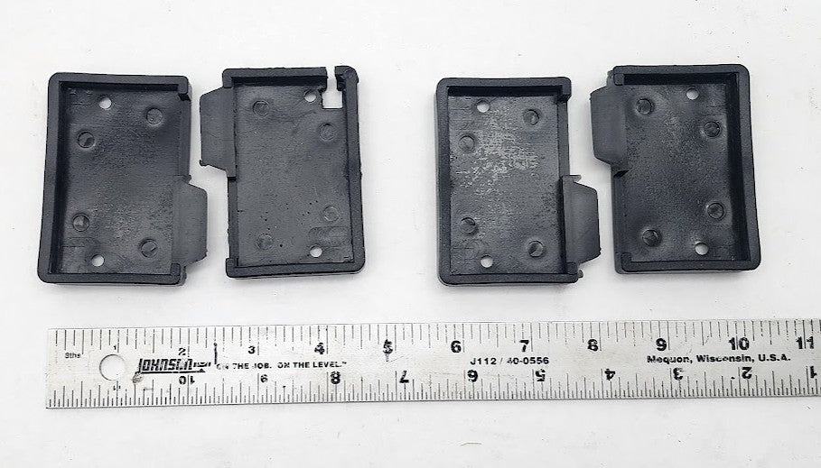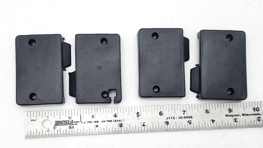 Set of 4 Plastic Replacement James Baroud brand awning end caps. These fit the 2.0 meter and 2.5 meter long classic straight awnings. The JB awning is made of two aluminum extrusions (one half stays bolted to the car, while the other unfurls with the awning tarp when you setup the awning), thus there are 4 end caps per awning as you see here in this replacement kit. The two halves have a small tab that helps them interlock when you fold the awning up for travel.