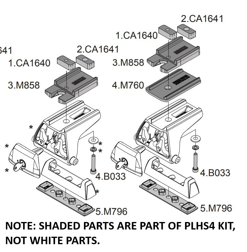 RHINO RACK PLHS4 Leg Height Spacer Kit for Quick Mount RLT600 Legs