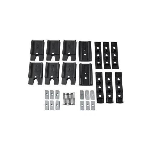 Includes parts to space up FOUR rhino rack RL600 type legs, including: leg spacers, fasteners, bolts, channel nuts, QMFK05 rubber RLT600 leg pads, etc.